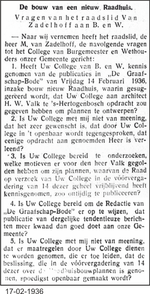 EERST IN 1938 WAS ER WEER SPRAKE VAN EEN NIEUW RAADHUIS!