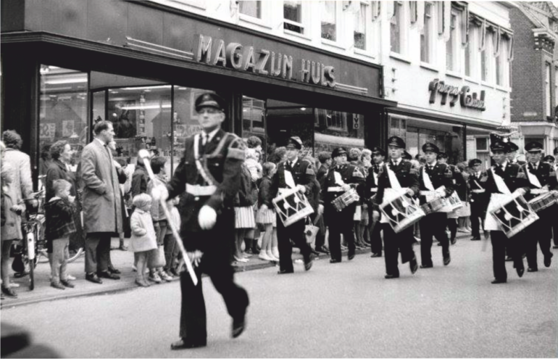Ook de jonge garde werd volledig uitgedost in mooie uniformen compleet met hoofddeksels. Foto uit 1955